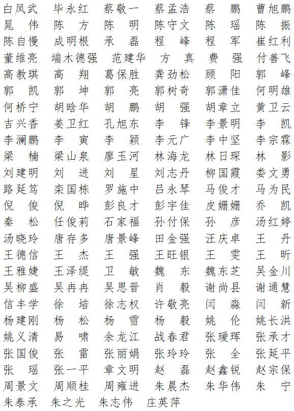 蔡   韬  曹名锋   曹旭鹏  陈   方  陈必强   陈可泉  陈修来   陈  瑶   陈  振  崔红利
